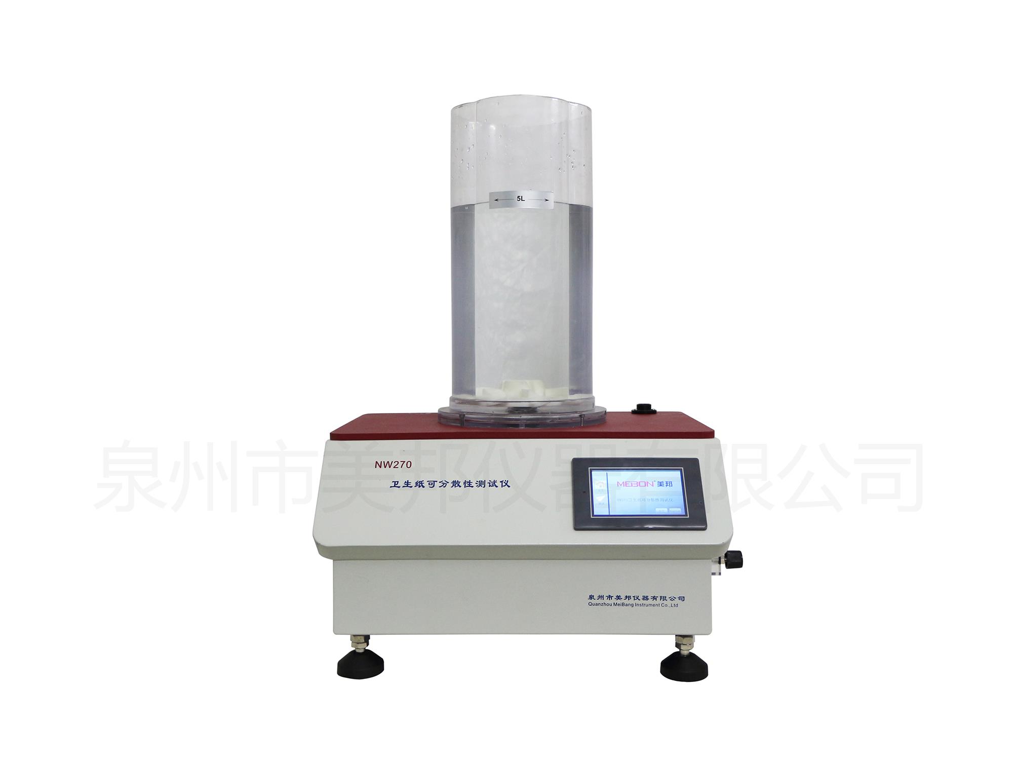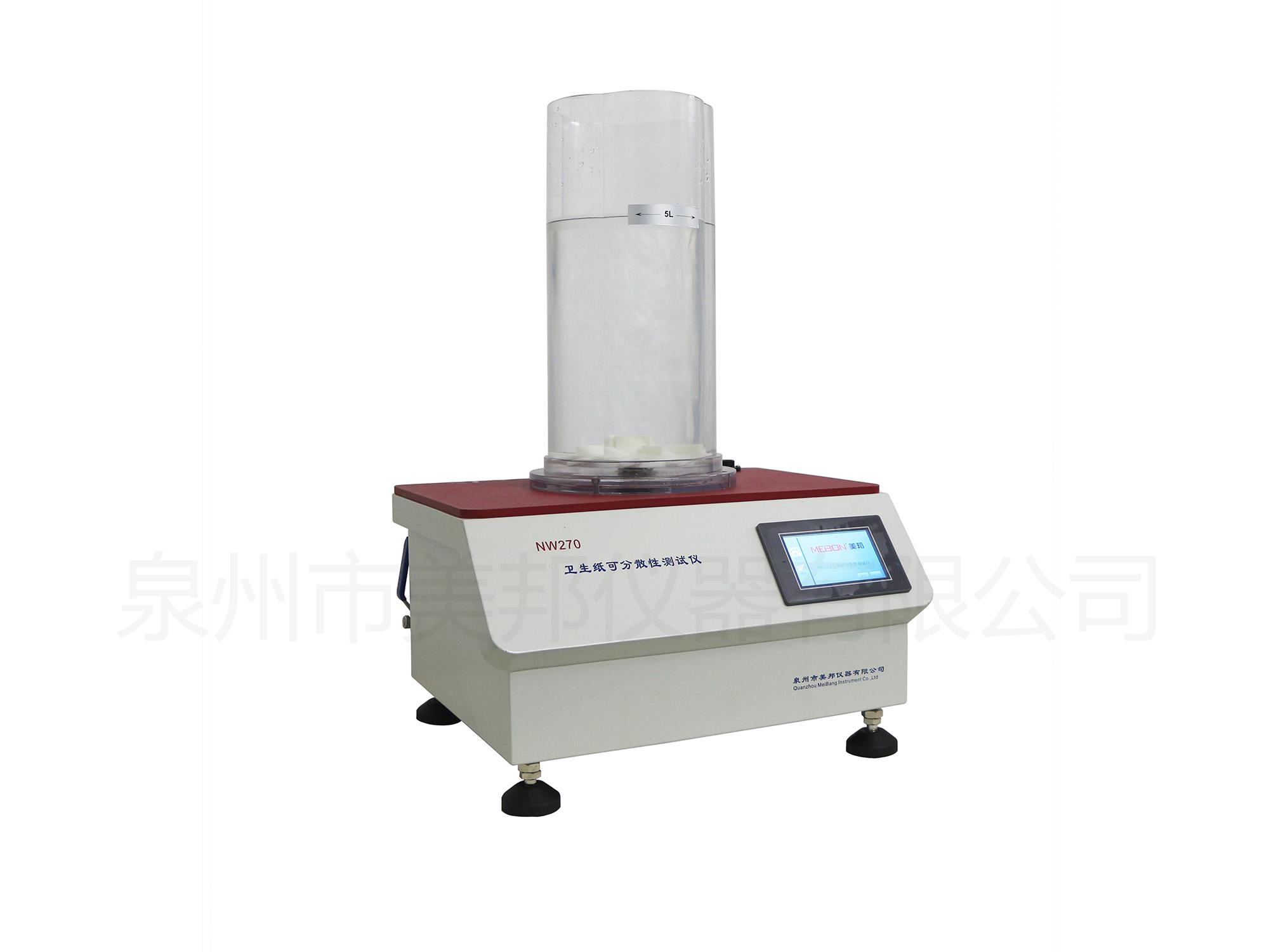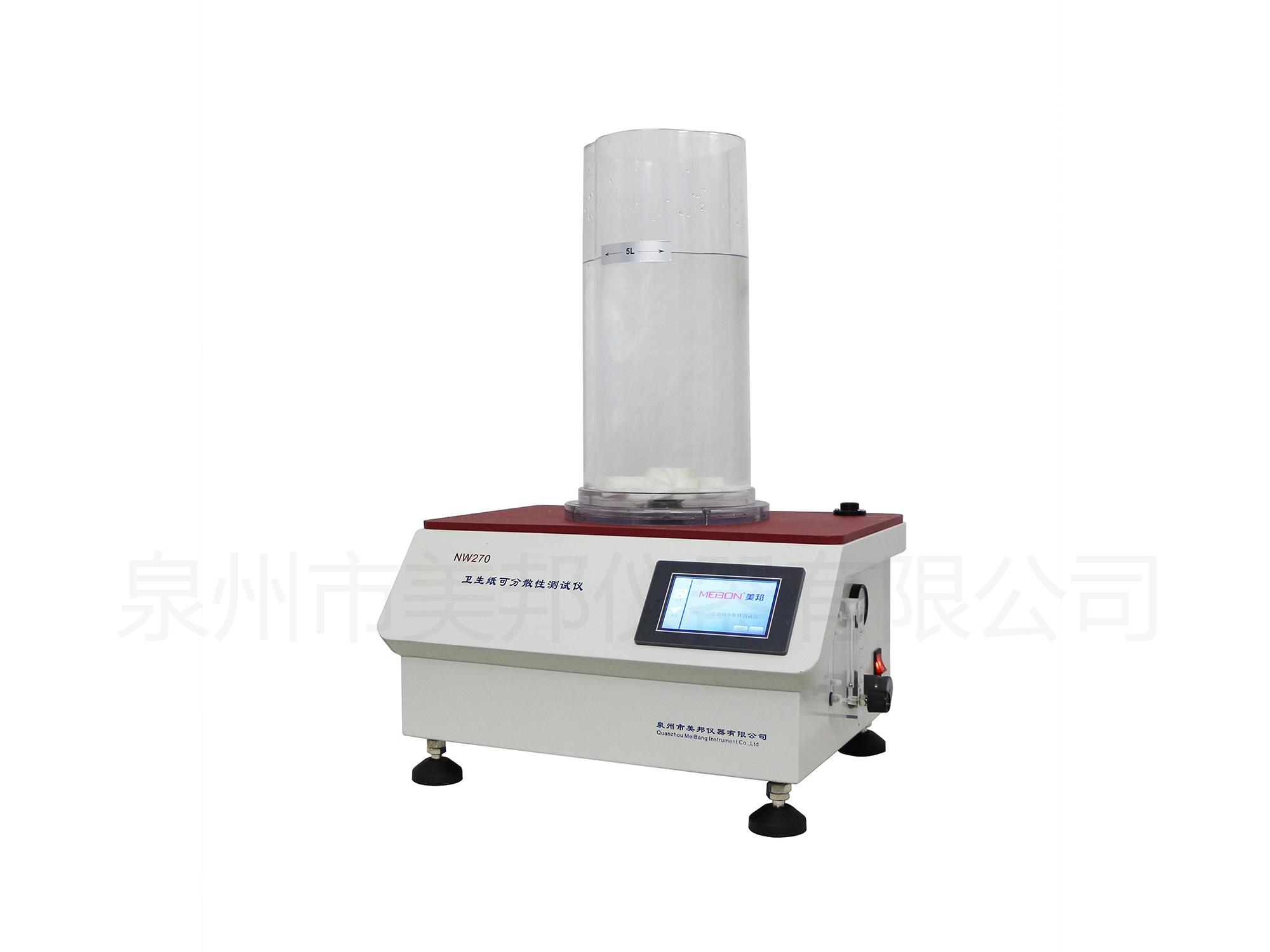 用于衛(wèi)生紙可分散性測(cè)試,模擬紙及制品在馬桶中的受力情況,觀察其在規(guī)定時(shí)間內(nèi)是否可以分散,或測(cè)定分散所需要的時(shí)間,測(cè)定儀由梅花筒、轉(zhuǎn)子、電機(jī)、氣體流量計(jì)組成。