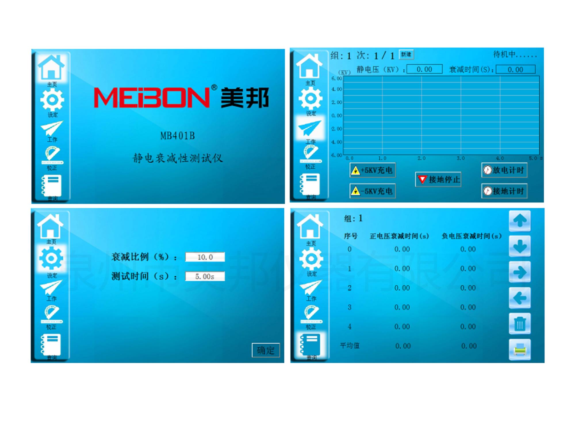 用于測(cè)試紡織服裝、醫(yī)用防護(hù)服材料、非織造布、復(fù)合材料、薄膜材料等試樣在施加±5000電壓后,測(cè)定試樣由峰值電壓衰減到一定比所需的靜電衰減時(shí)間。