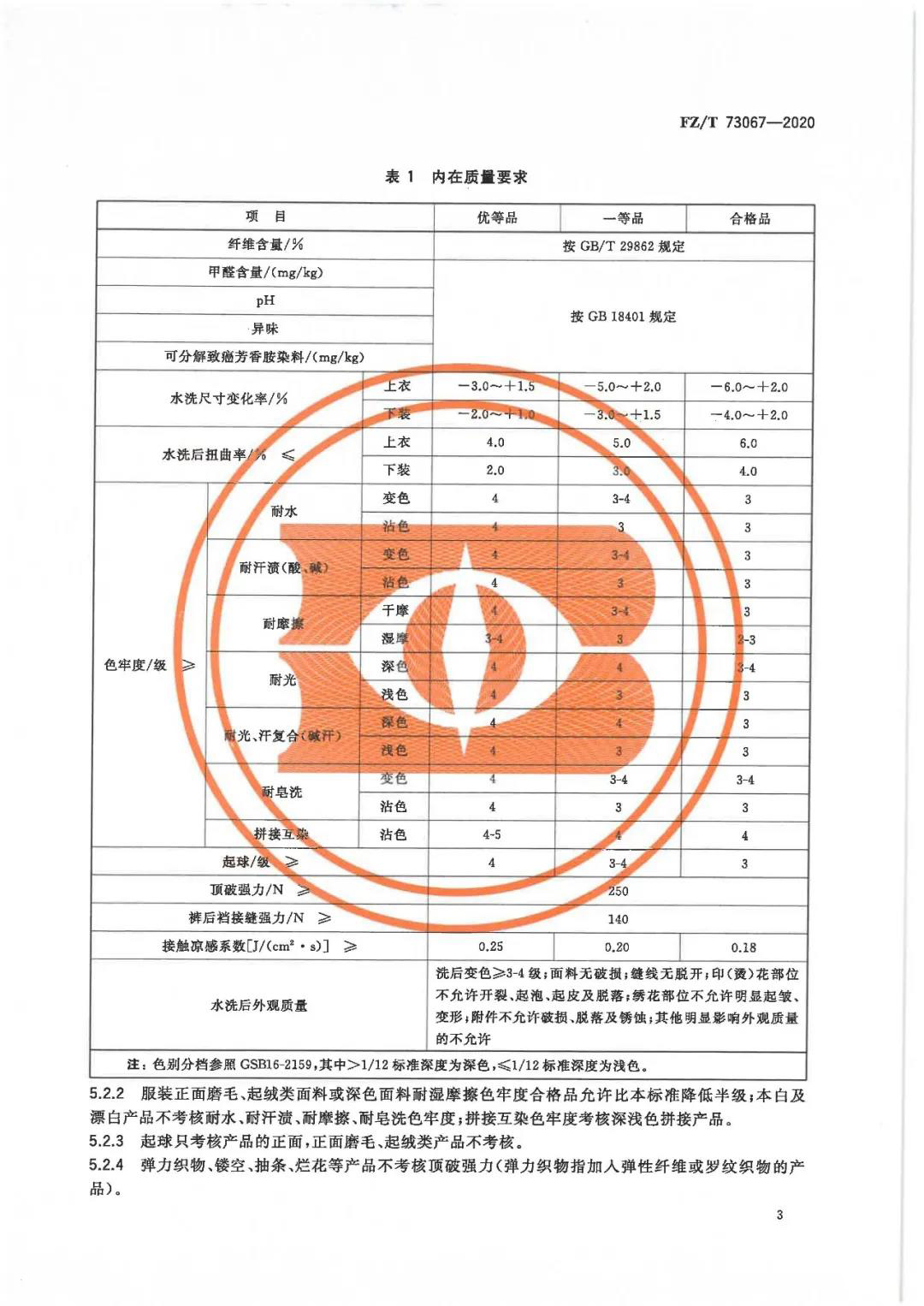 FZ/T 73067《接觸涼感針織服裝》將產(chǎn)品的涼感功能分為三個等級,優(yōu)等品服裝的接觸涼感系數(shù)不小于0.25、一等品服裝的接觸涼感系數(shù)不小于0.20、合格品服裝的接觸涼感系數(shù)不小于0.18,這都比GB/T 35263-2017《紡織品 接觸瞬間涼感性能的檢測及評定》中不小于0.15的要求要高。