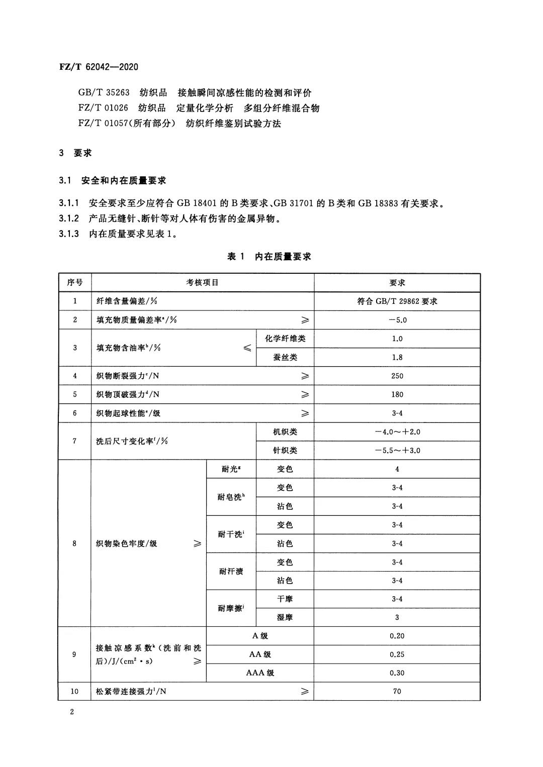 FZ/T 62042《涼感面料床上用品》也是根據(jù)產(chǎn)品的接觸涼感系數(shù)把產(chǎn)品分為三個等級,A級產(chǎn)品的接觸涼感系數(shù)不小于0.20、AA級產(chǎn)品的接觸涼感系數(shù)不小0.25、AAA級產(chǎn)品的接觸涼感系數(shù)不小于0.30,我們看到床上用品的接觸涼感要求比服裝還要高。