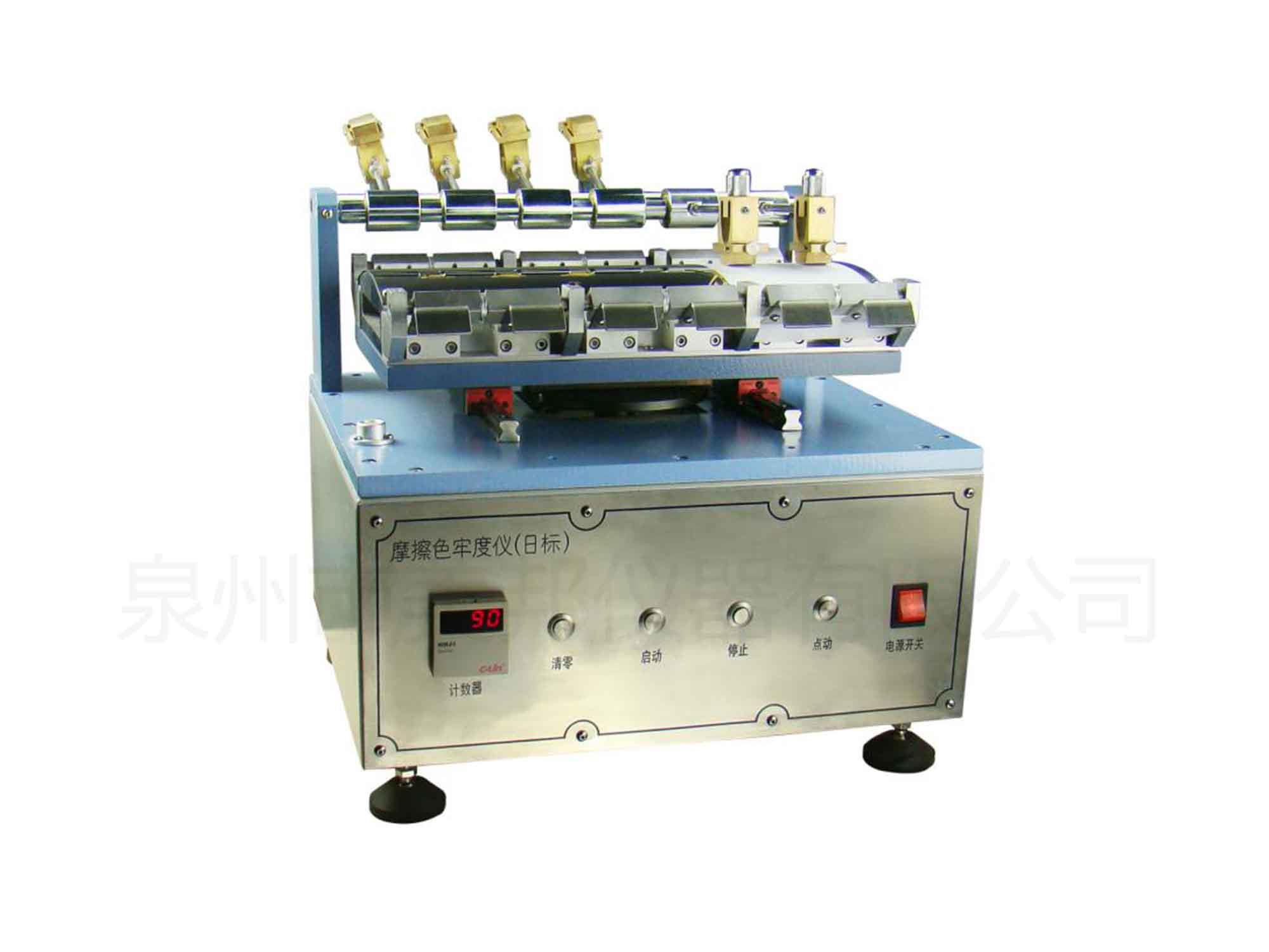主要用于染色纖維制品的耐摩擦色牢度的評價和判定;用干燥或濕潤之白棉布扎于本機(jī)之摩擦頭表面,以一定之荷重及次數(shù),摩擦有色試片后,對照灰色標(biāo),評定染色摩擦堅(jiān)牢度等級;亦可作為有機(jī)溶劑之摩擦試驗(yàn)。